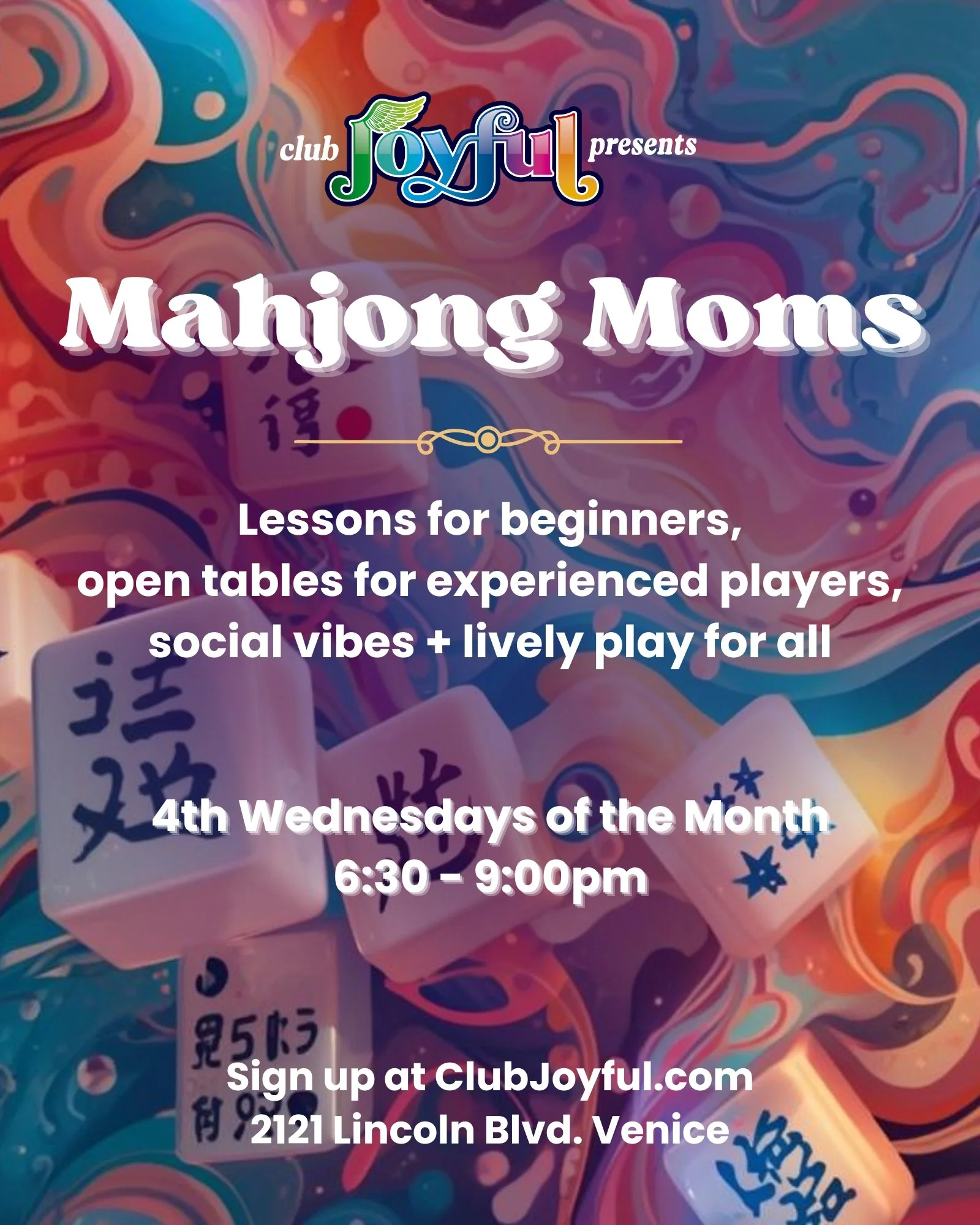 Join us for a monthly night of mahjong fun! Lessons for beginners, open tables for experienced players, and lively play for all levels. Whether you’re learning the tiles for the first time or already a seasoned player, pull up a chair and enjoy a friendly, social evening of strategy, laughter, and community.
