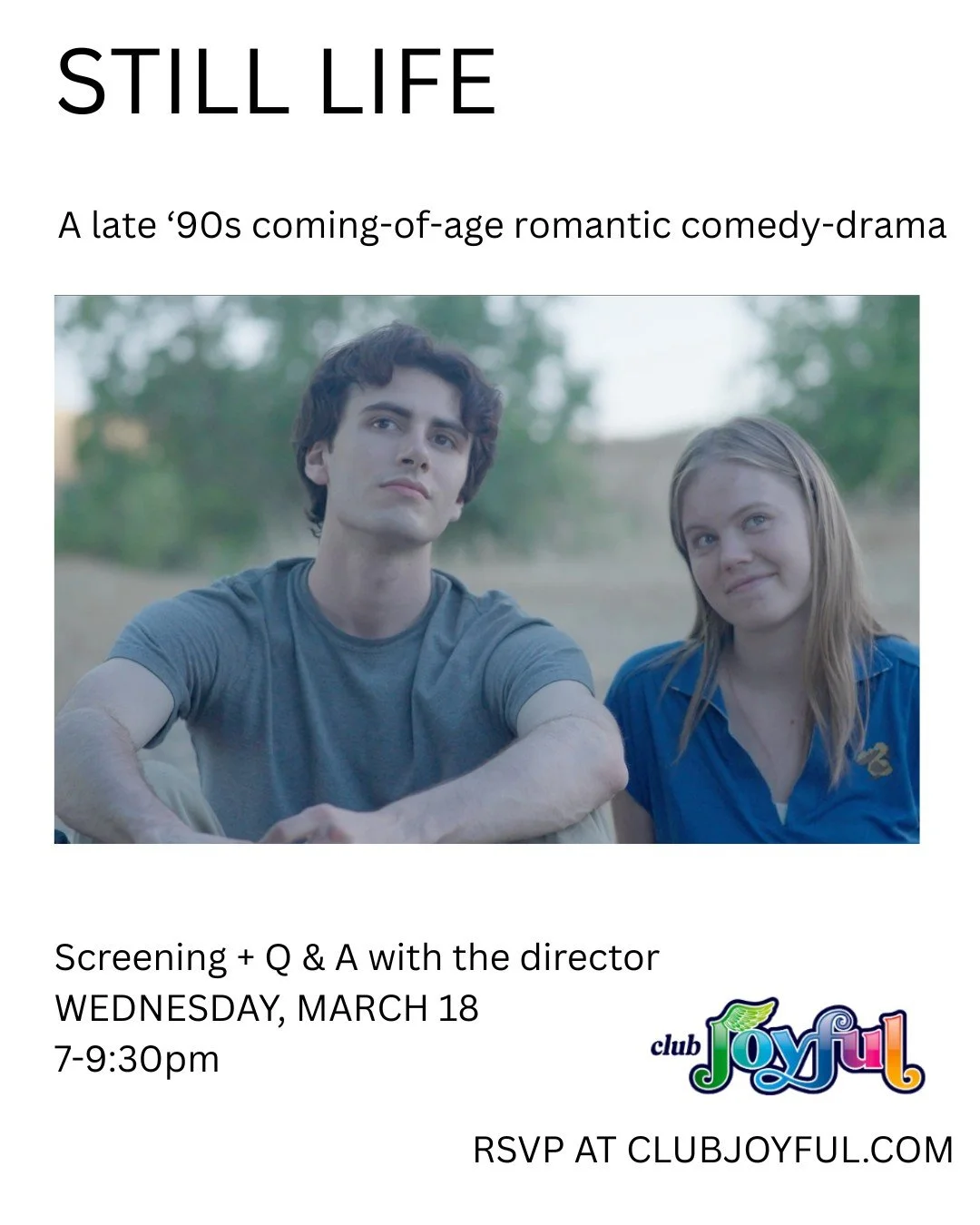 Join us at Club Joyful for a special screening of Still Life, a heartfelt coming-of-age film by director Lauren Shapiro.